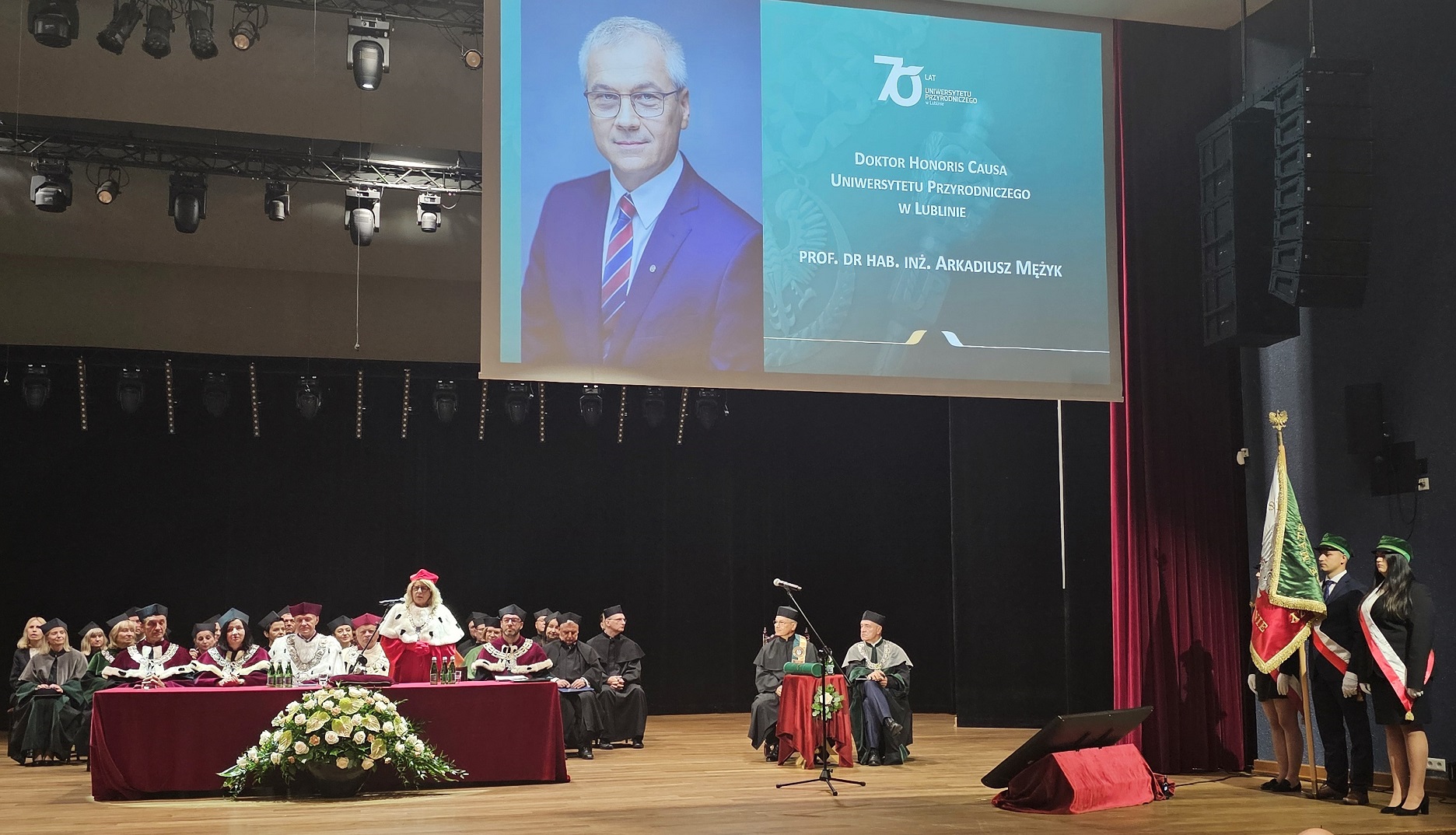 Dzisiaj odbyła się uroczystość nadania zaszczytnego tytuły Doktora Honoris Causa Uniwersytet Przyrodniczy w Lublinie prof. Arkadiuszowi Mężykowi. Profesor jest wybitnym naukowcem z zakresu dynamiki maszyn, uznanym animatorem polskiej nauki, wieloletnim Członkiem naszego Komitetu Budowy Maszyn Polska Akademia Nauk.